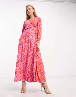 Never Fully Dressed contrast wrap maxi dress in red leopard clash-Multi