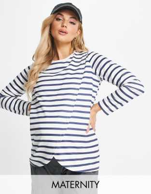 New Look Maternity long sleeve nursing sweatshirt in black and white stripe-Multi