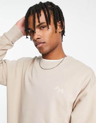 New Look mountain embroidered sweatshirt in stone-Neutral
