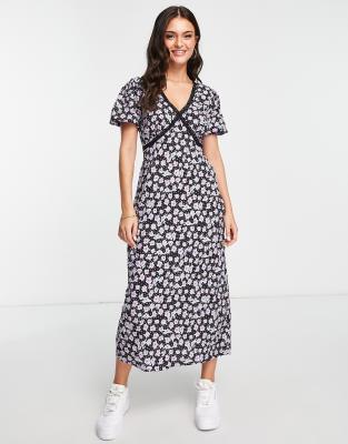 Dress by New Look Do get caught wearing it twice Floral design V-neck Lace detail Regular fit