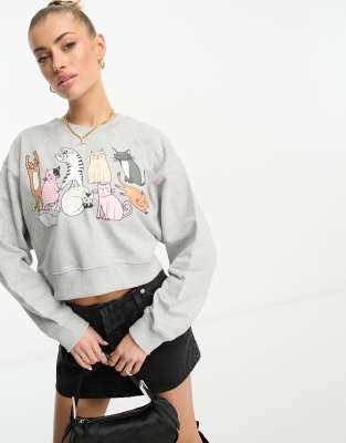 Hoodies & Sweatshirts by New Love Club Your sign to stop scrolling Crew neck Drop shoulders Cat print Relaxed fit