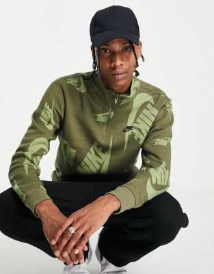 Nike Club Fleece Plus logo printed 1/2 zip sweatshirt in khaki-Green
