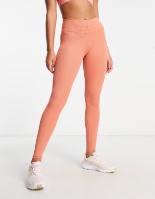 Nike Training Dri-FIT One Luxe 7/8 ribbed leggings in terracotta-Orange