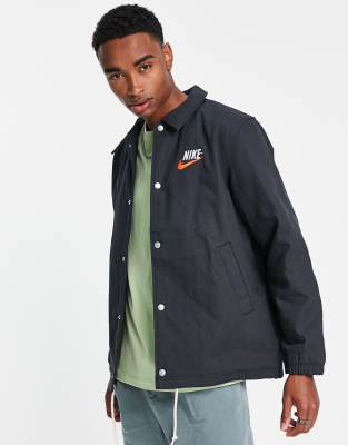 Jacket by Nike Throw on, go out Spread collar Snap placket Logo detail to chest and back Side pockets Drawstring hem Regular fit