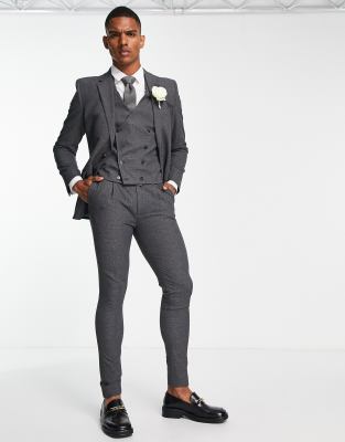 Noak super skinny premium fabric suit jacket in charcoal micro-texture-Gray