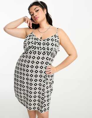 Noisy May Curve cami mini dress in black and white flower-Multi