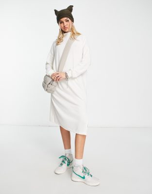 Noisy May exclusive high neck midi sweater dress with side slit in cream-White