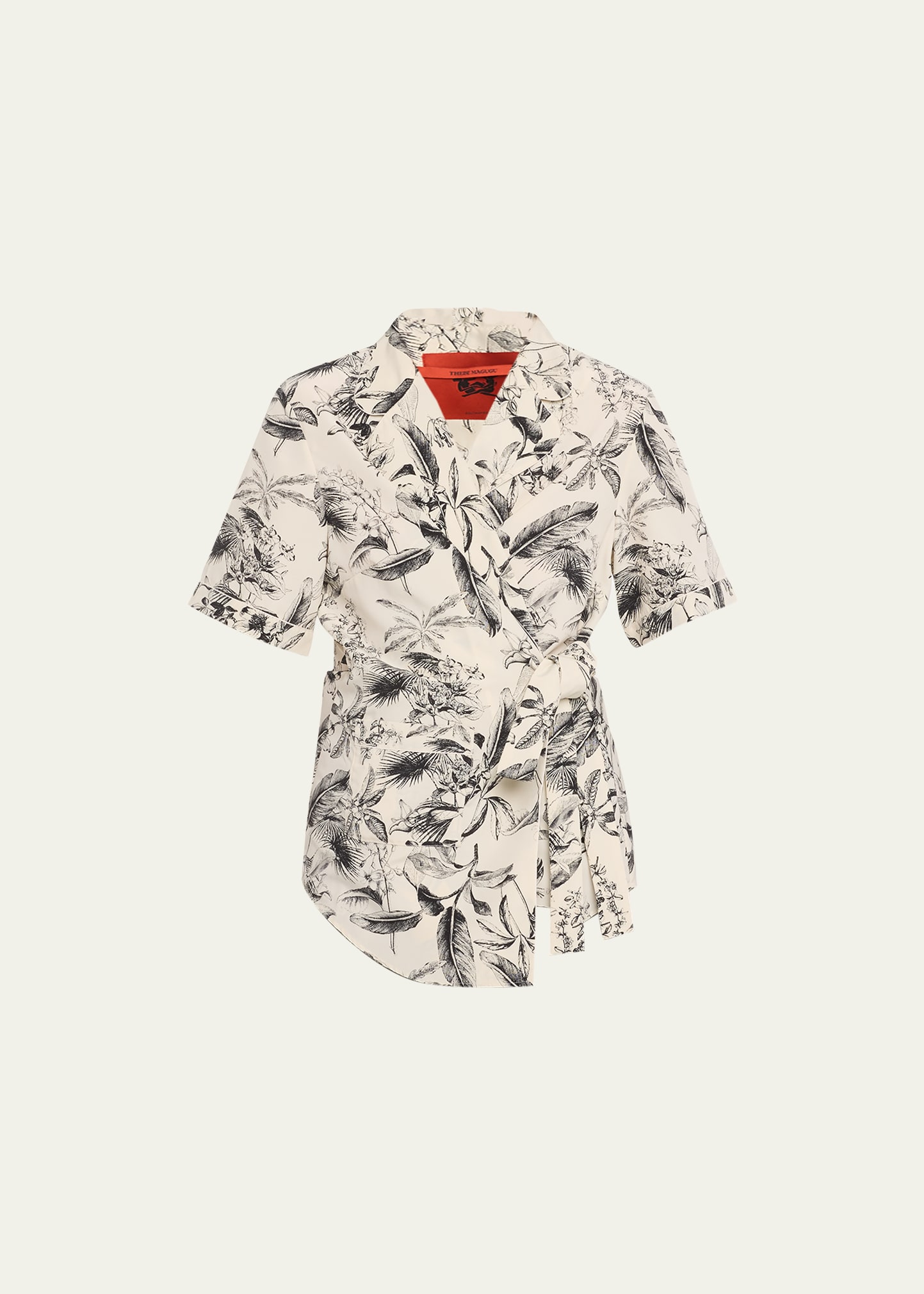 Thebe Magugu "Obi" pajama top in porcelain floral print Notch lapel Short sleeves Wrap silhouette Polyester Imported