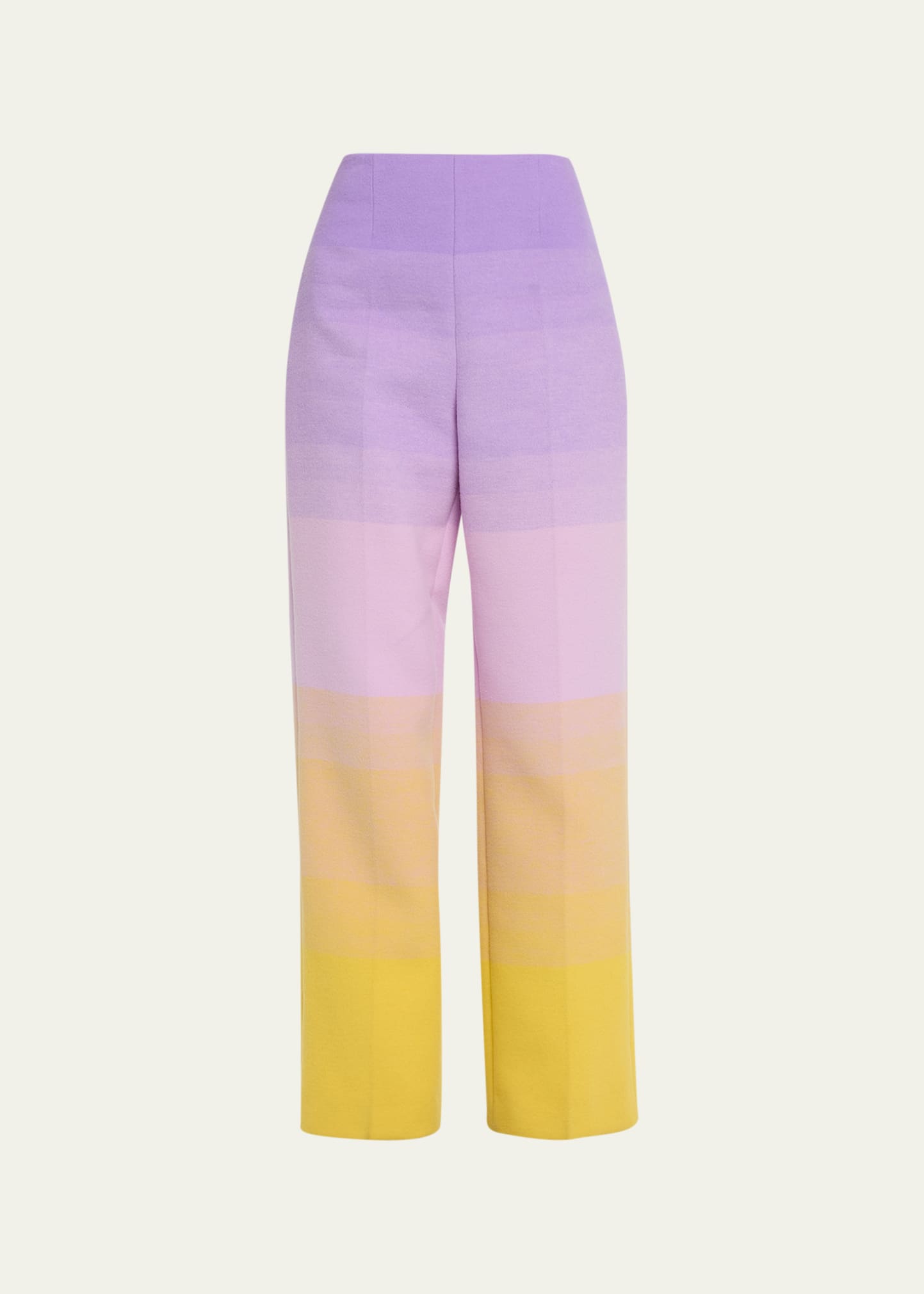Oscar de la Renta double-face wool-blend pants in an ombre design Midrise sits high on hip Cropped at the ankle Straight legs Invisible side zip Virgin wool/silk Dry clean Made in Italy
