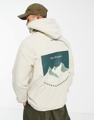 Only & Sons fleece oversized hoodie with back print in beige-Neutral
