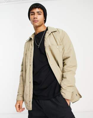 Only & Sons padded worker jacket with borg fleece lining in beige-Neutral