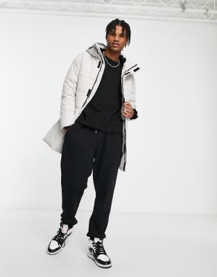 Only & Sons waterproof longline heavyweight puffer with hood in white