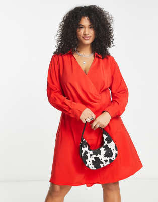 Dresses by Only Curve Dress the part Spread collar Wrap front Blouson sleeves Elasticated cinch to back Regular fit