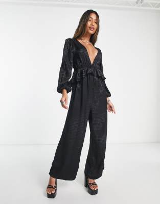 Jumpsuits & Rompers by Only Your no effort, effort-maker Houndstooth design Plunge neck Frill waist Wide leg Regular fit