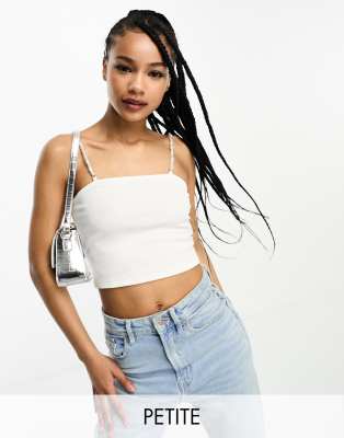 Tops by Only Petite Waist-up dressing Square neck Faux-pearl straps Cropped length Slim fit