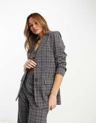 Blazers by Only Part of a co-ord set Vest sold separately Check design Notch lapels Padded shoulders Two-button fastening Regular fit