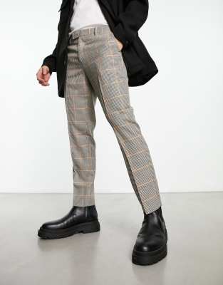 Original Penguin slim cropped smart pants in black and yellow check