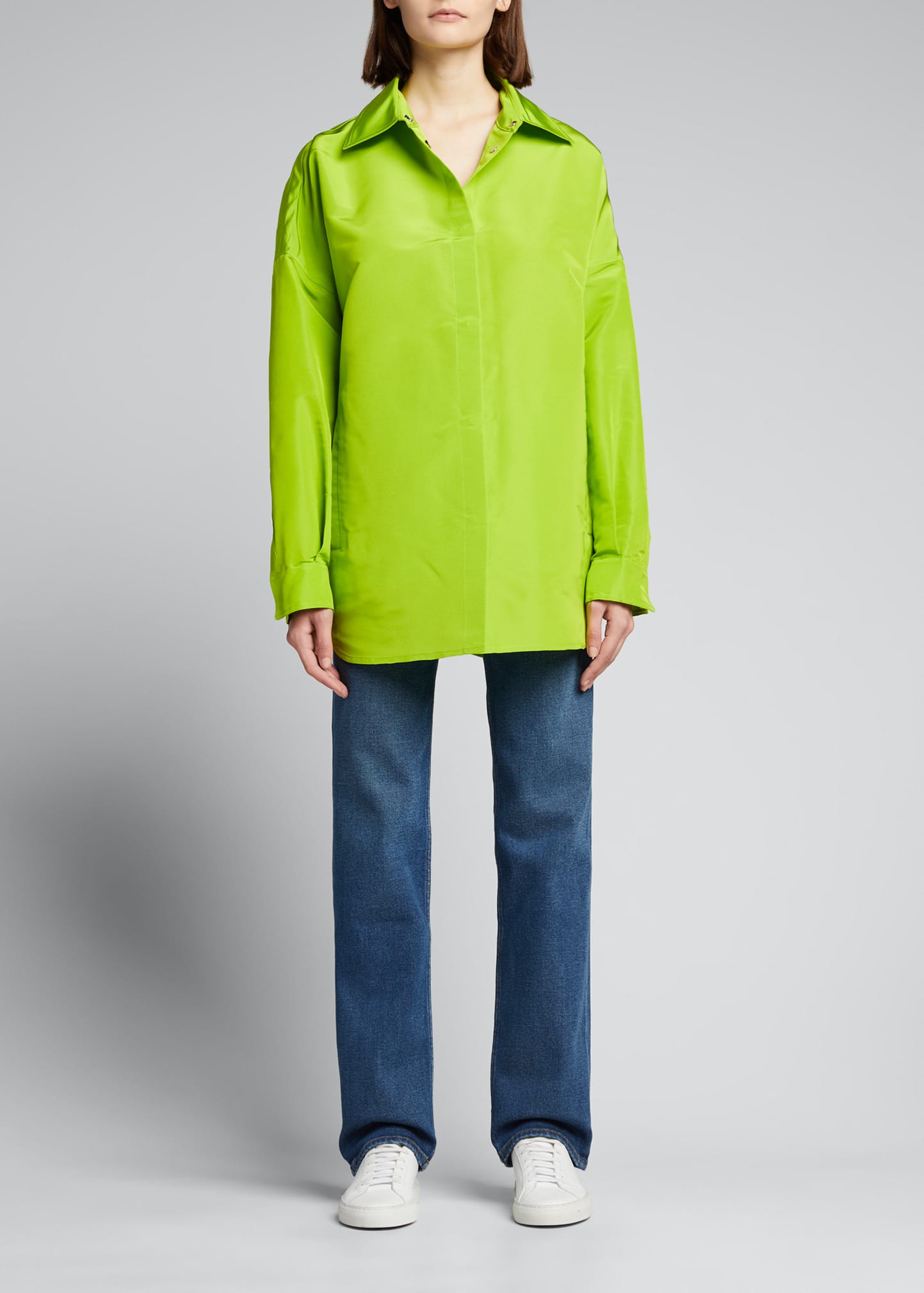 Valentino silk shirt Spread collar; button front Long sleeves; button cuffs Side seam pockets Oversized fit Silk Made in Italy