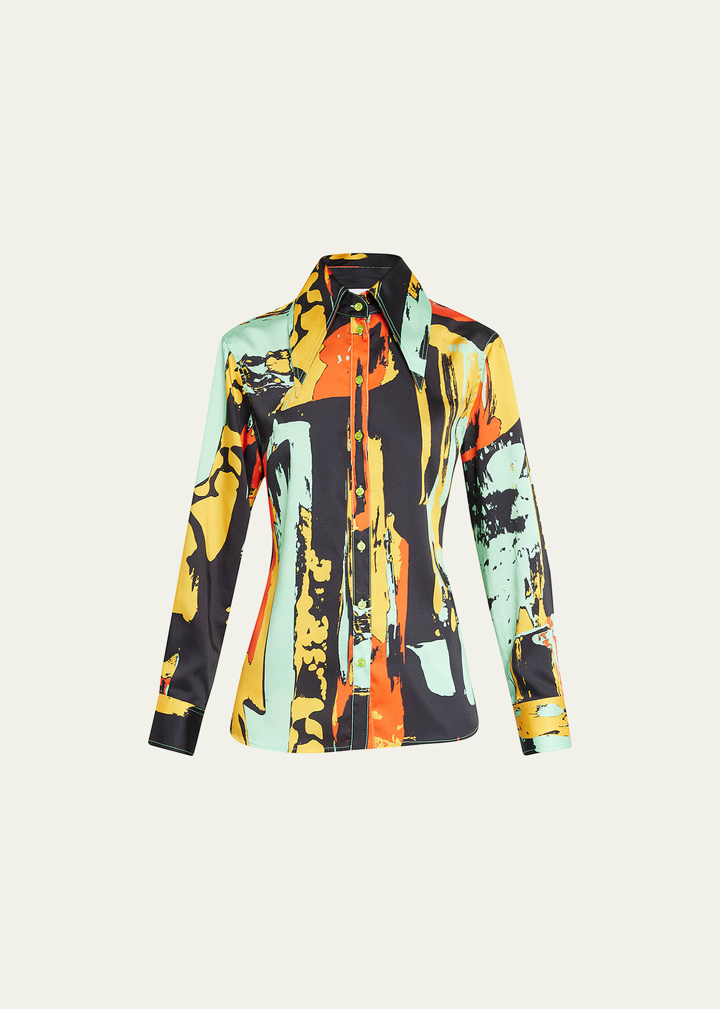 CHRISTOPHER JOHN ROGERS shirt in paint smear motif Wide point collar; button front Long sleeves; button cuffs Slim fit Curved hem Viscose Dry clean Made in USA