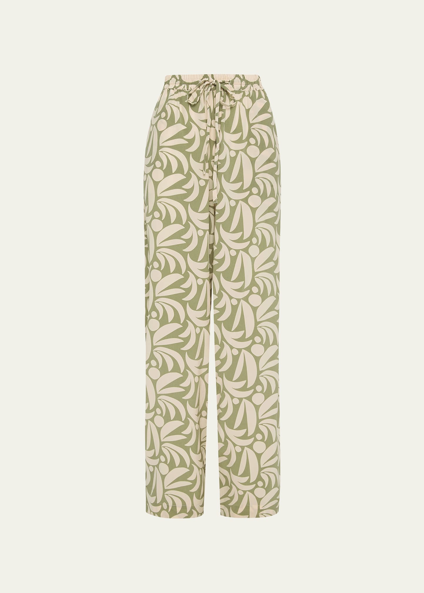Matteau lounge trousers printed in Palmas motifs Mid rise Drawstring waistband Side seam pockets Full length Relaxed legs Pull-on style Silk Imported