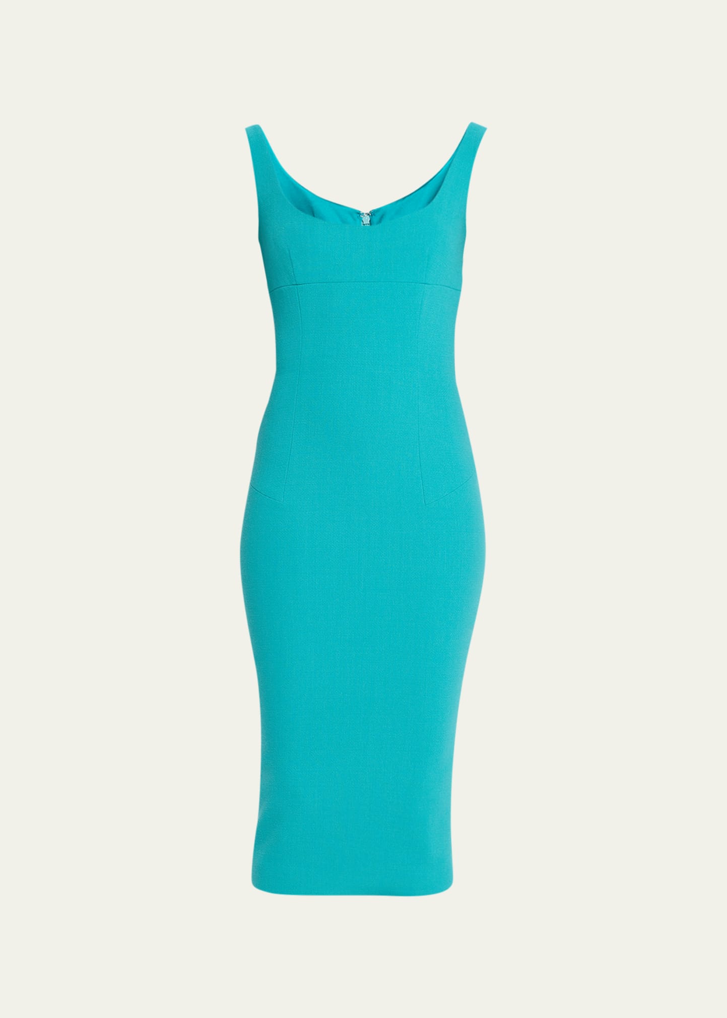 Sergio Hudson paneled tank dress Scoop neckline Sleeveless Sheath silhouette Midi length Center vented back Back zip Wool Dry clean Made in Italy