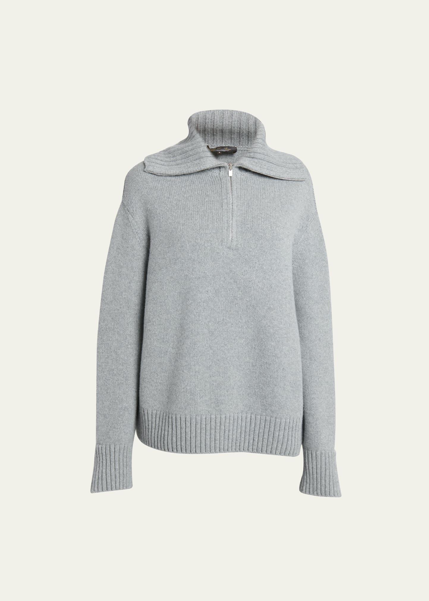Loro Piana "Parksville" quarter-zip sweater in cashmere Spread collar Long sleeves; split cuffs Ribbed trim Mid-length Relaxed fit Pullover style Cashmere Dry clean Made in Italy