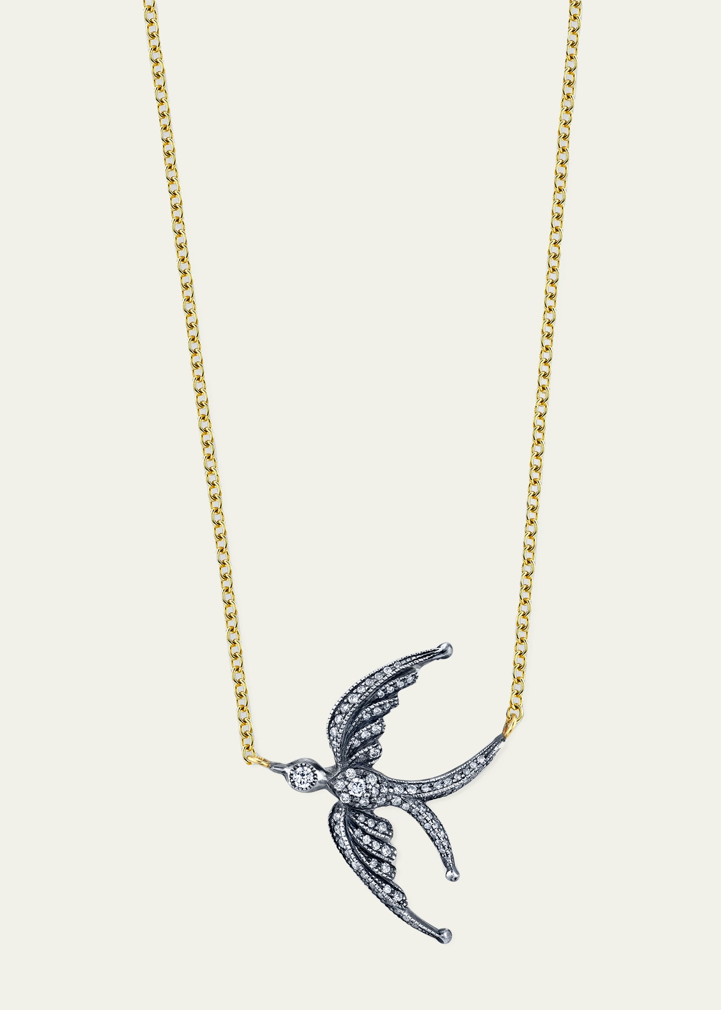 Arman Sarkisyan Pave Diamond Swallow Pendant Designer About Arman: Arman Sarkisyan is not your typical jeweler, a throwback to a time of old world jewelry-making, his methods are as ornate and intricate as each of his pieces. Inspired by his travels, art, as well as mystical and spiritual elements, many of his designs are a blend of the Gothic and Byzantine eras combined with modern influences. Working with rich 22-karat gold and oxidized silver, as well as precious and semi-precious stones, .