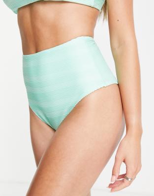 Peek & Beau Exclusive mix and match high waist bikini bottom in ribbed mint-Blue