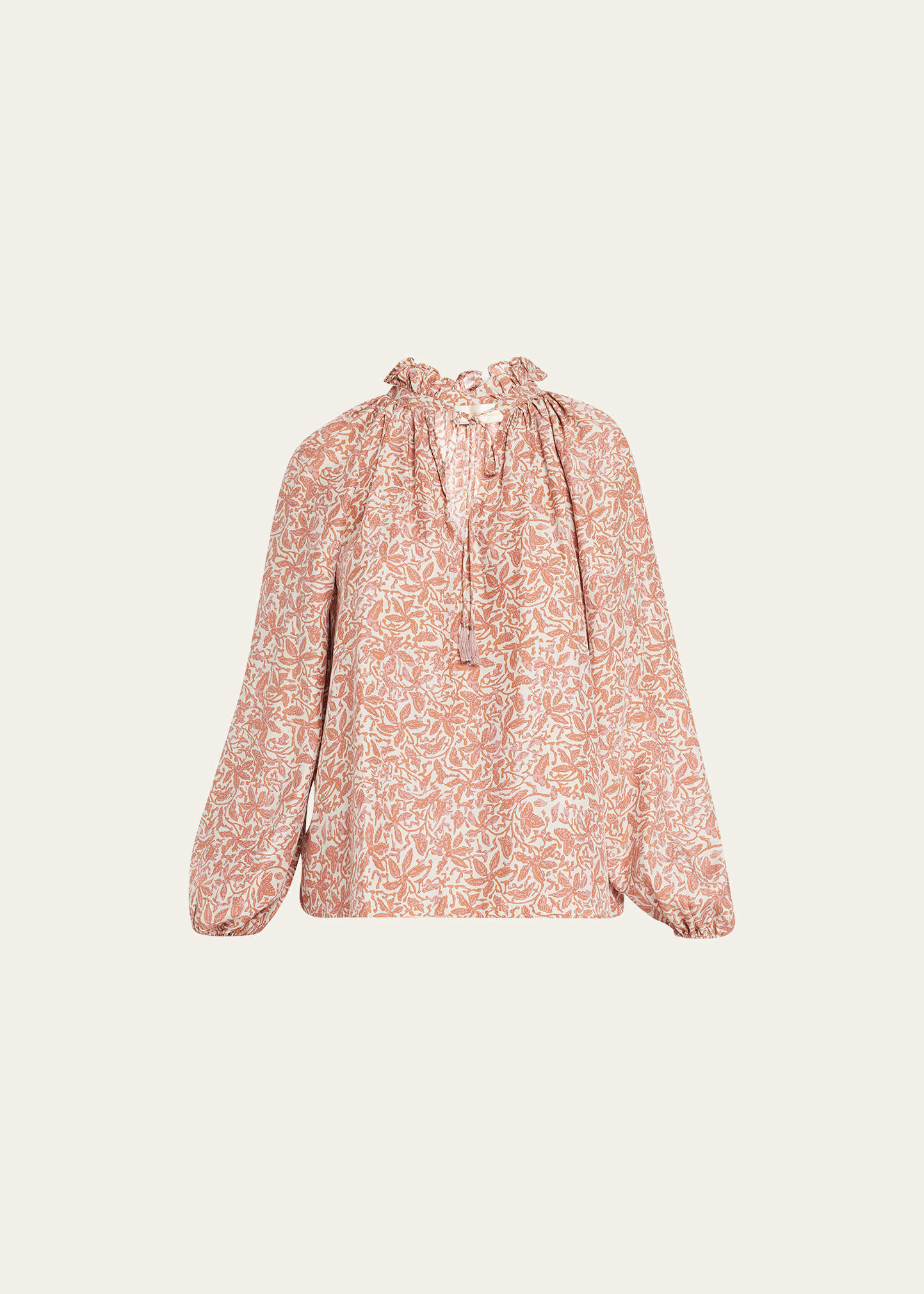 Natalie Martin "Penny" flowy blouse framed by voluminous sleeves Ruffled collar; split neckline with self-ties Long sleeves; button cuffs Relaxed fit Pullover style Silk Hand wash cold Imported