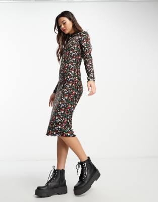 Dresses by Pieces It's a whole mood Floral design High neck Long sleeves Lettuce-edge trim Regular fit