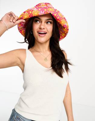 Accessories by Pieces Buckets of fun Floral print Flat top Wide brim