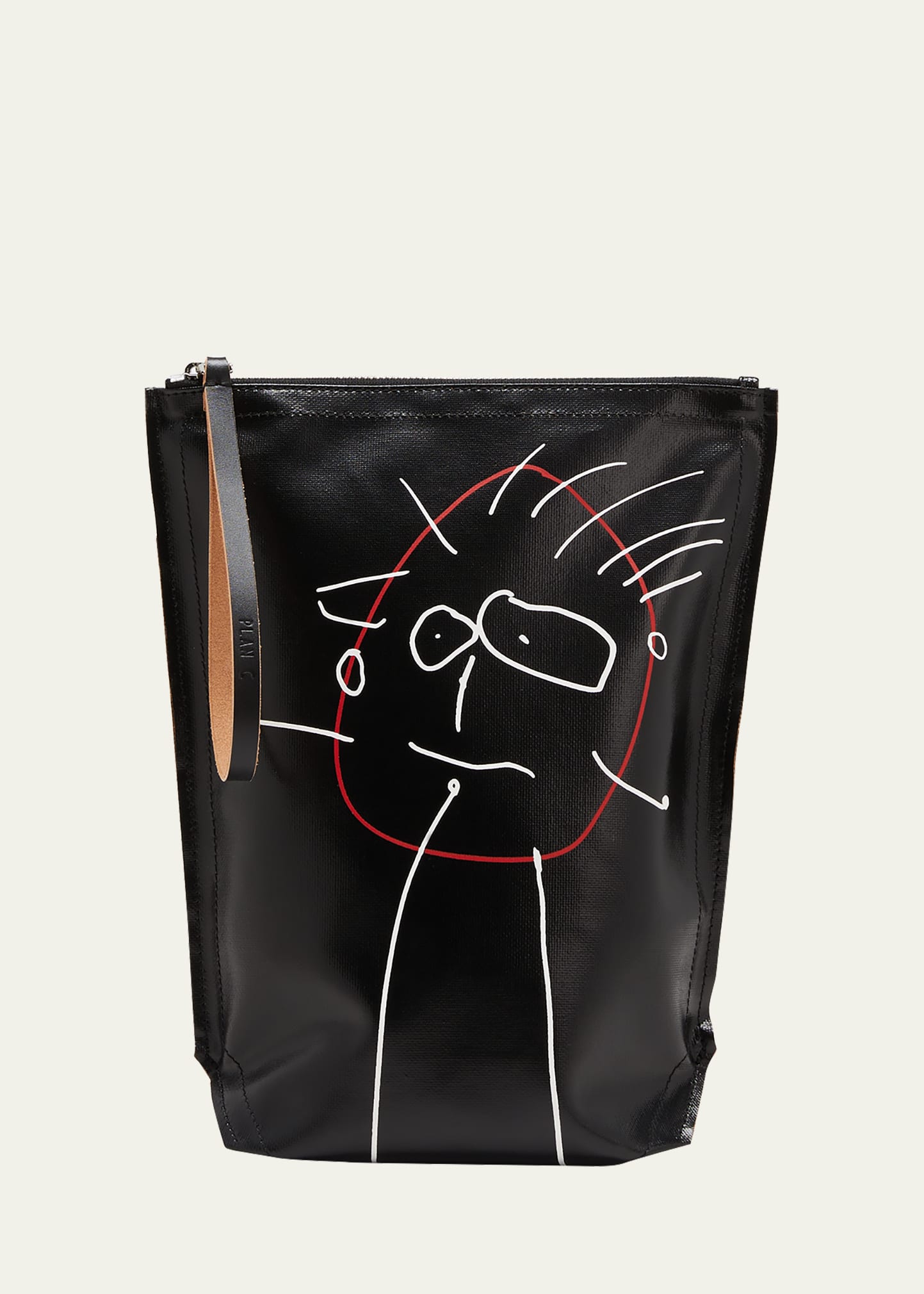 Plan C "Pili Bianca" clutch bag in shiny canvas, faux leather (polyurethane), and nylon Features signature sketch graphic print Wristlet strap Zip top closure Approx. 5.9"H x 9.8"W x 1.2"D Made in Italy