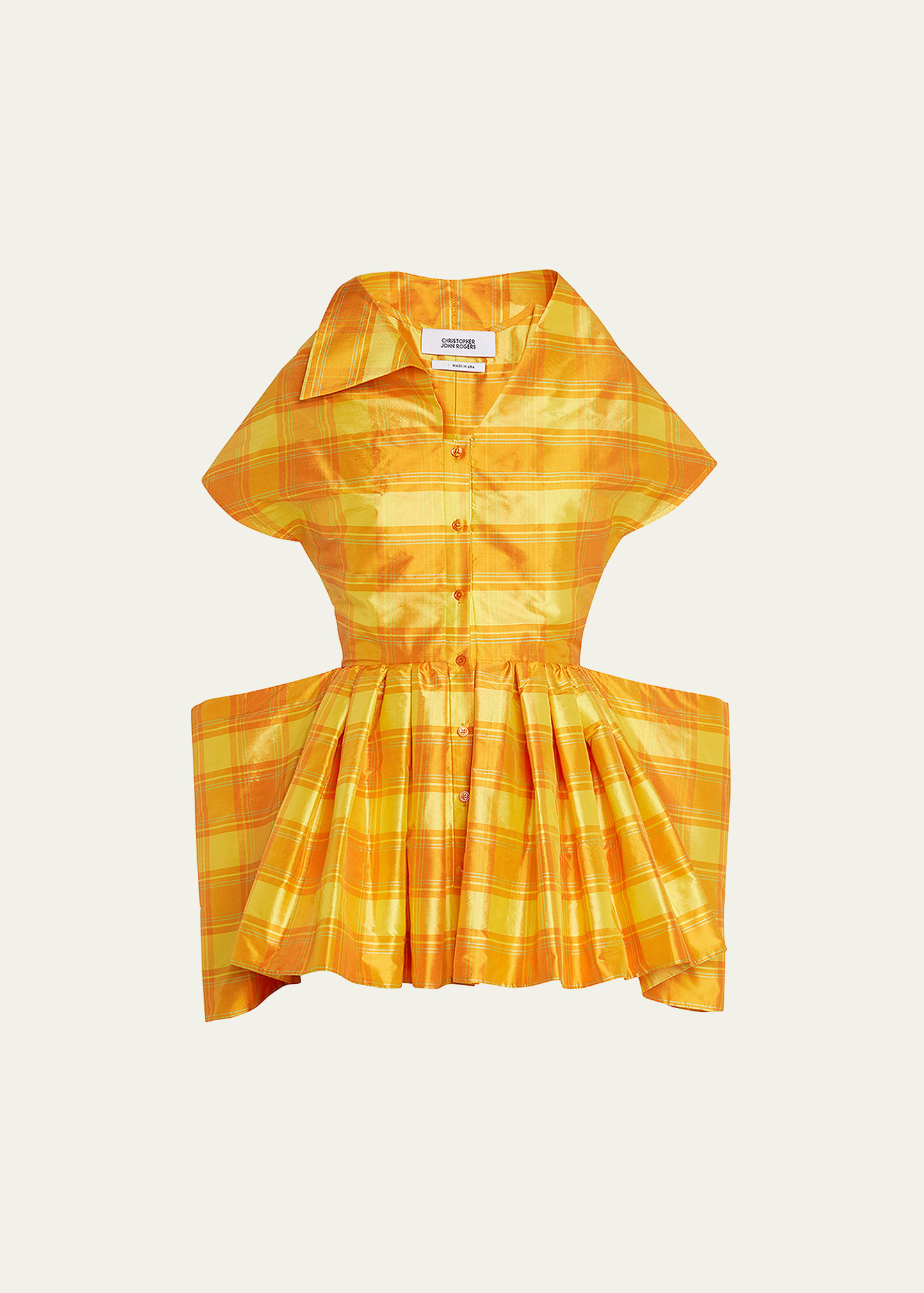 CHRISTOPHER JOHN ROGERS plaid top with gathered detail Stand collar; button front Short sleeves Fitted Peplum hem Silk Dry clean Made in USA