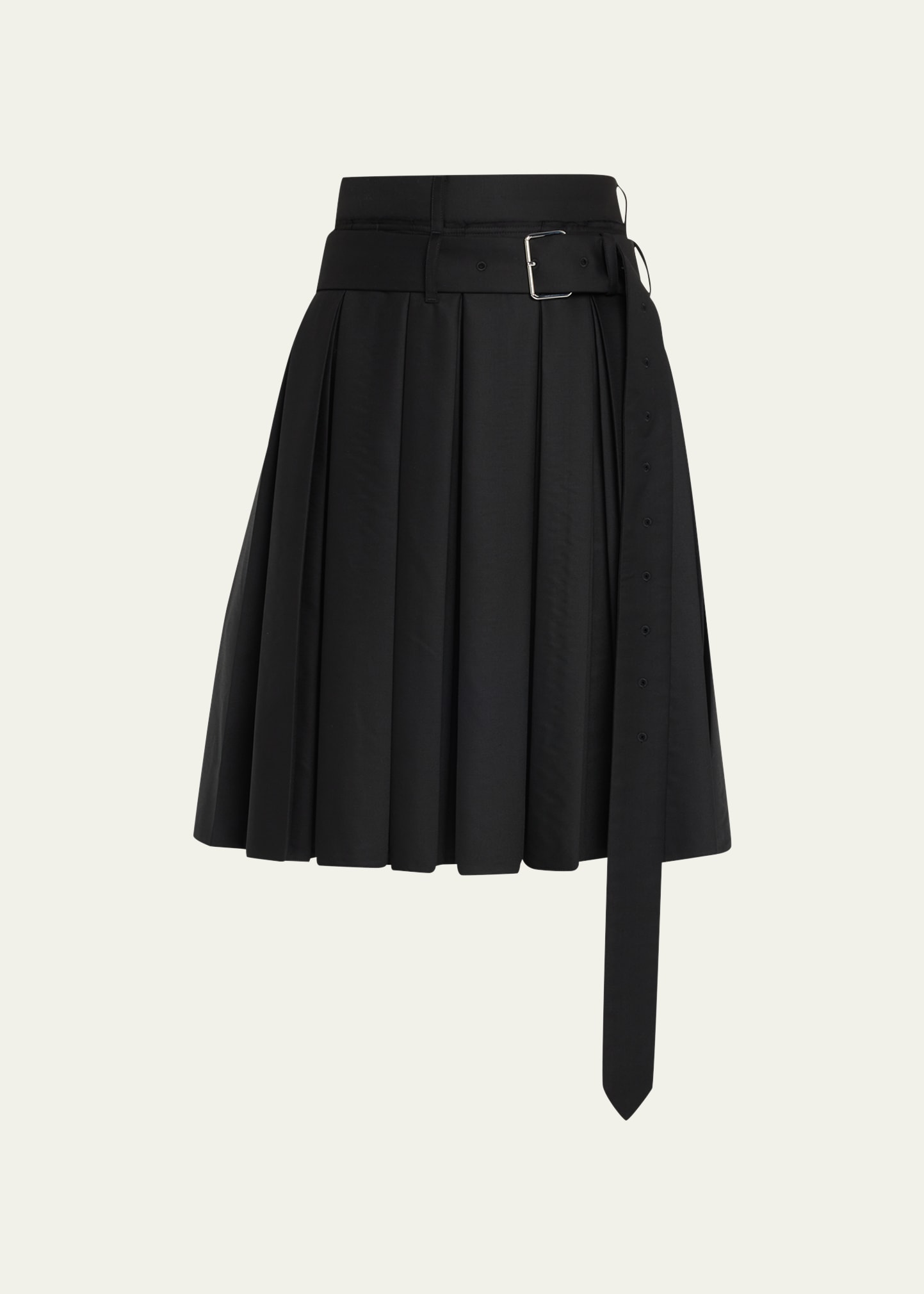 Peter Do pleated skirt with adjustable belt High waist Fit and flare silhouette Knee length Back zip Virgin wool/viscose/acetate Made in Italy