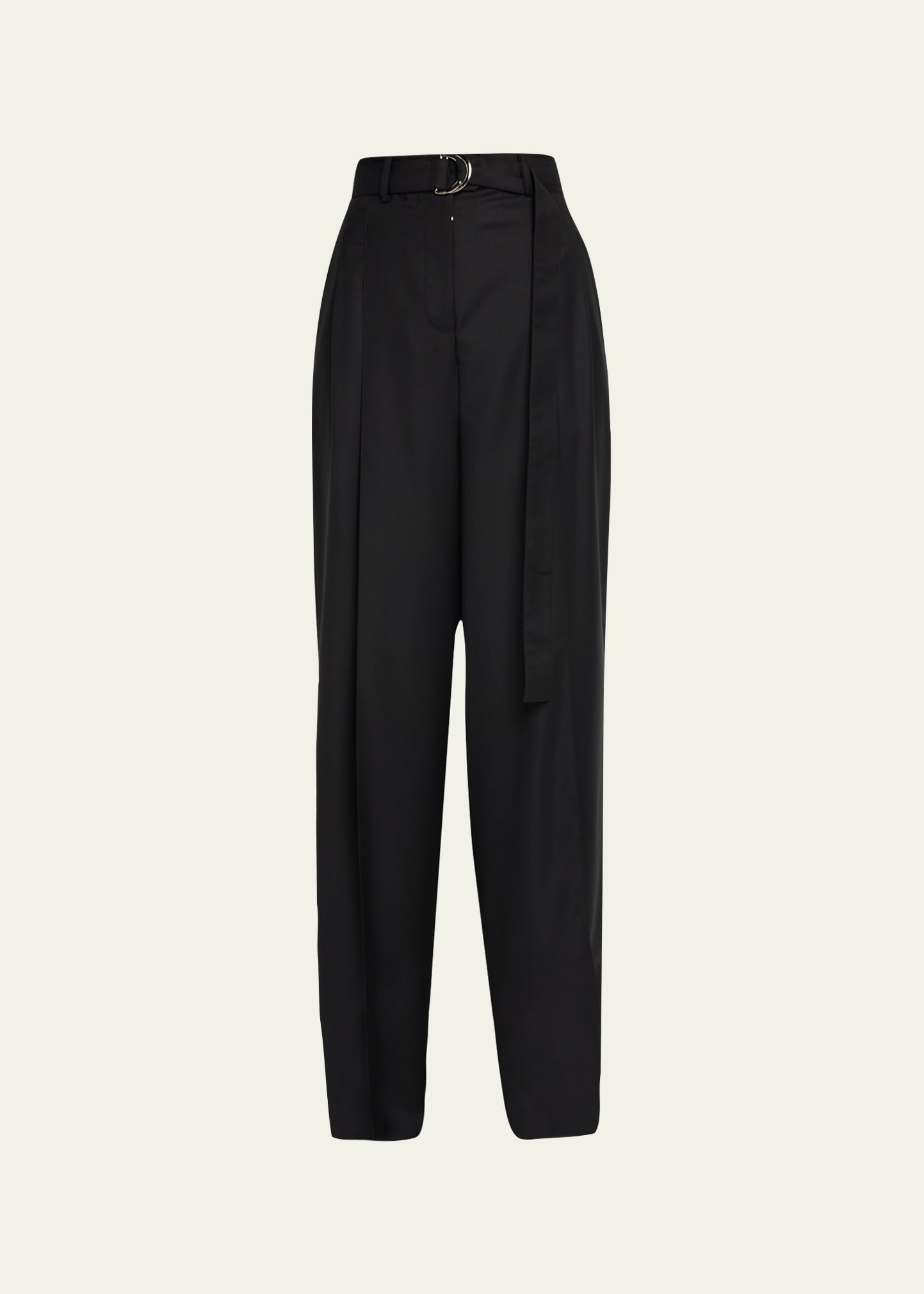 Peter Do tailored pants with pleated front and D-Ring belt High rise Side slip pockets; back welt pockets Wide legs Cropped at the ankle Button/zip fly; belt loops Virgin wool/viscose/acetate Made in Italy