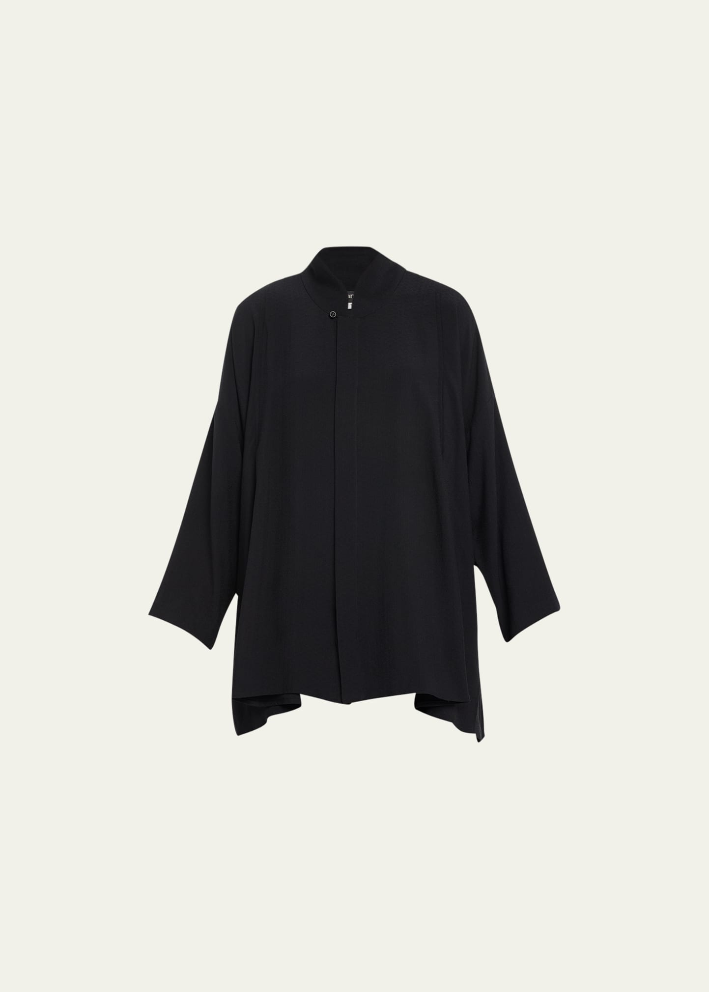 Eskandar swing shirt with pleated shoulders with slits Chinese collar; button sewn Long sleeves Long plus length Silk Made in Poland
