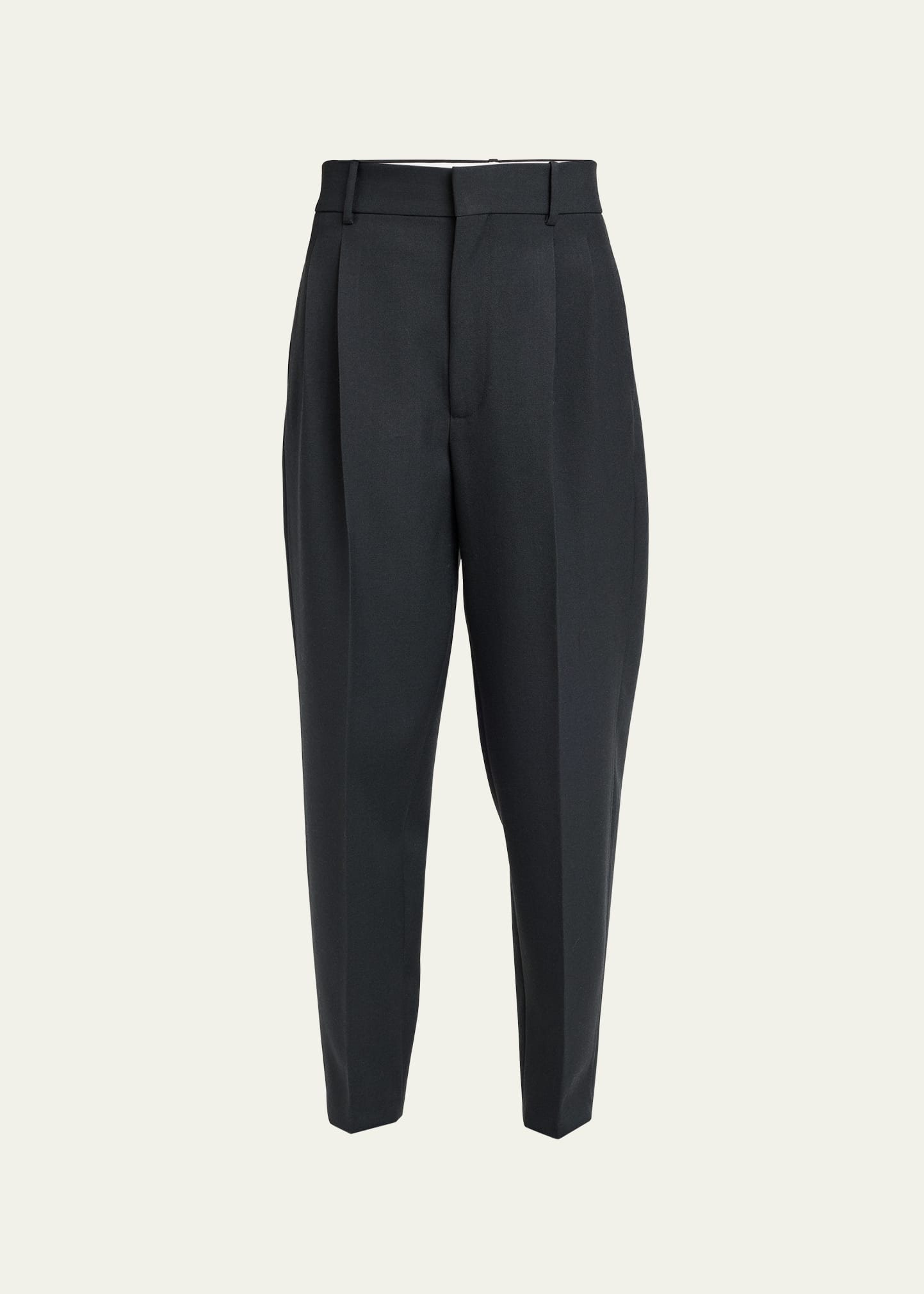 Quira tailored trousers with pleated front High rise Side slip pockets; back welt pockets Tapered legs Full length Tab/zip fly; belt loops Virgin wool Made in Italy