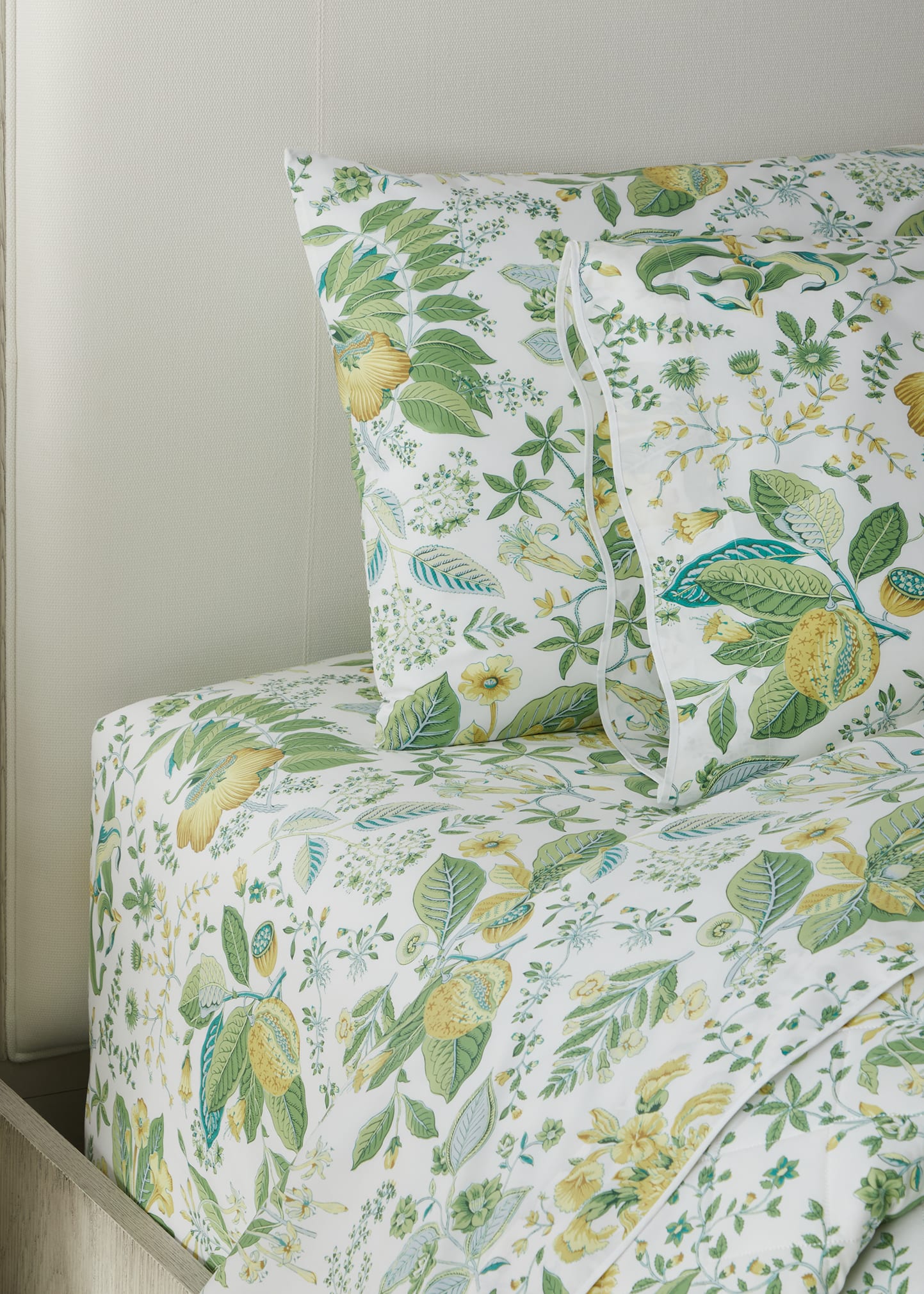 Based on an 18th-century design from Schumacher's archive, Pomegranate reimagines a timeless botanical This vibrant style is printed on our 500 thread count Egyptian cotton percale Finished with subtle scalloped trim Approx. 21" x 41" Machine wash warm Set of two Made in USA from imported materials