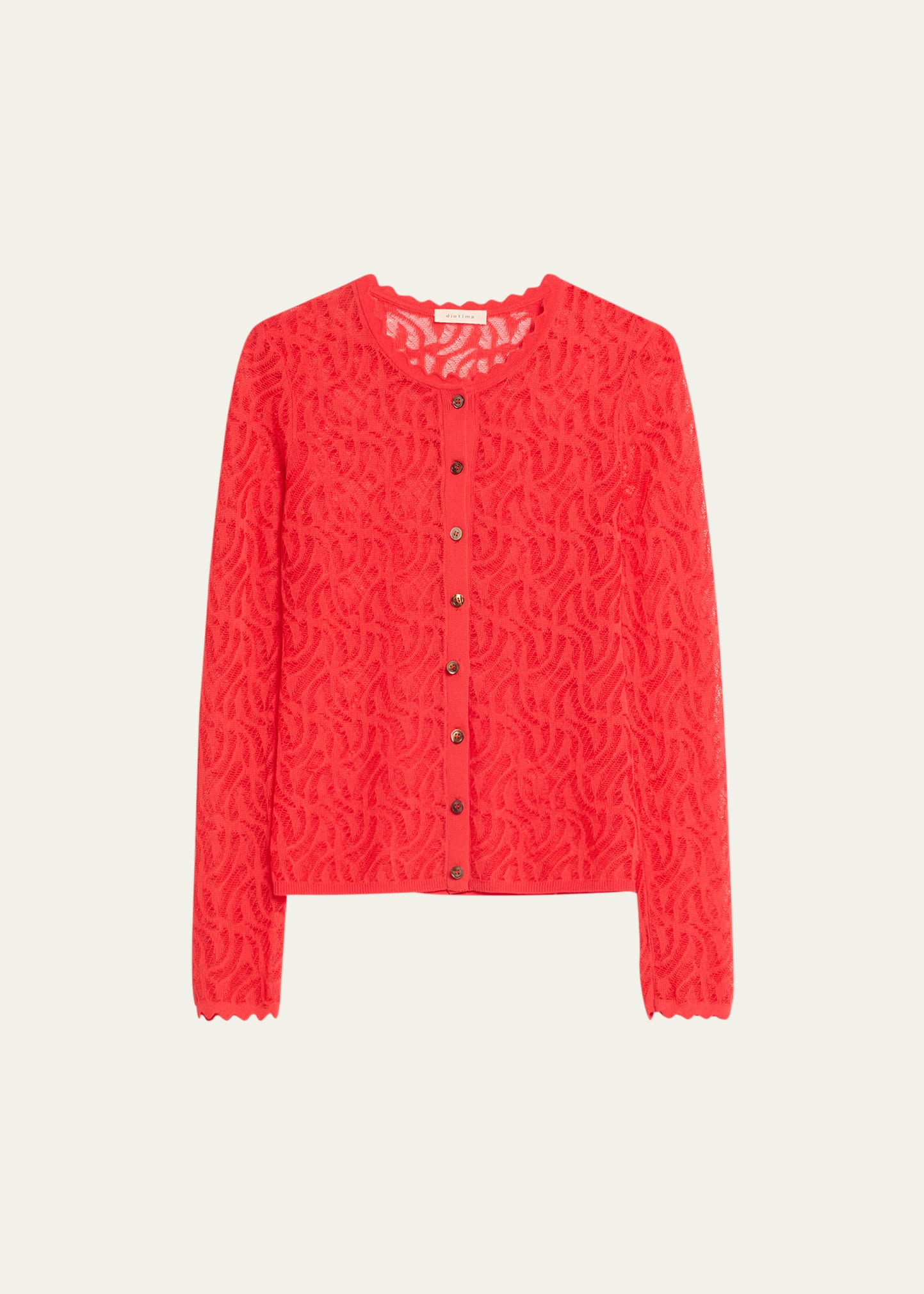 DIOTIMA "Portia" lace knit cardigan with scalloped finishing Crew neckline; button front Long sleeves Slim fit Viscose/nylon Unlined Professional cleaning recommended Imported