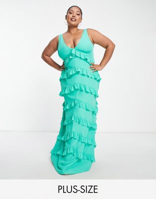 Pretty Lavish tiered ruffle midaxi dress in orange terracotta stripe