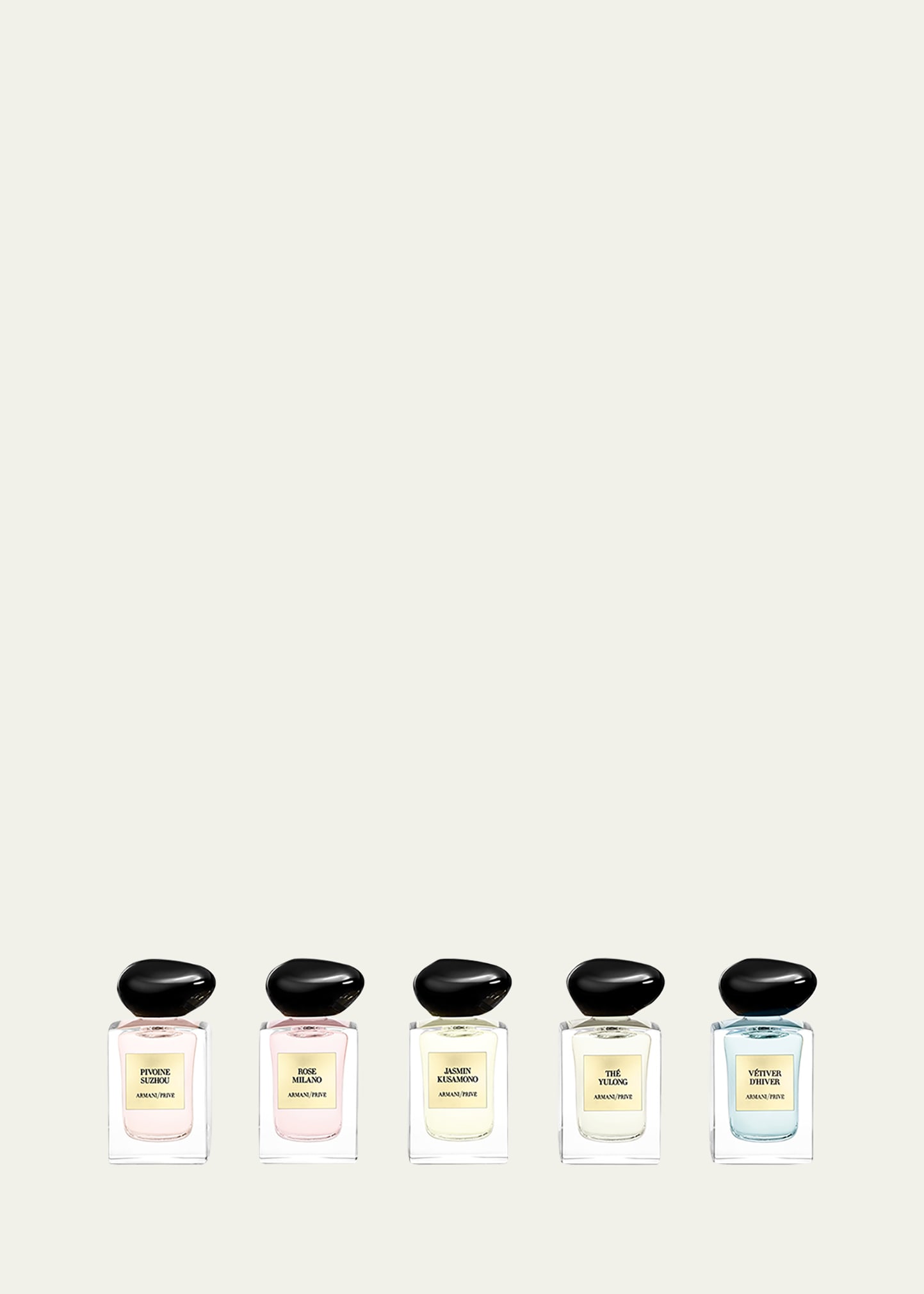 Pivoine Suzhou, a blooming yet delicate peony fragrance echoing the harmony of Suzhou gardens in China. Rose Milano, a delicate Damascena rose emboldened fragrance with matching earthy notes of Chypre, the embodiment of Milanese elegance. Vetiver d'Hiver, contrasts the freshness of zesty accords with warm vetiver, inspired by a mirage-like garden in the winter of Saint Petersburg. Jasmin Kusamono, the multifaceted delicacy of a Jasmine Sambac soliflore fragrance, in stark contrast to the.