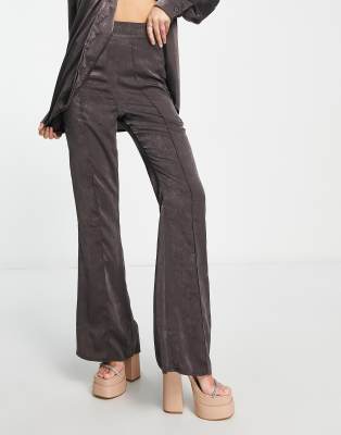 Public Desire satin wide leg pants in charcoal - part of a set-Gray