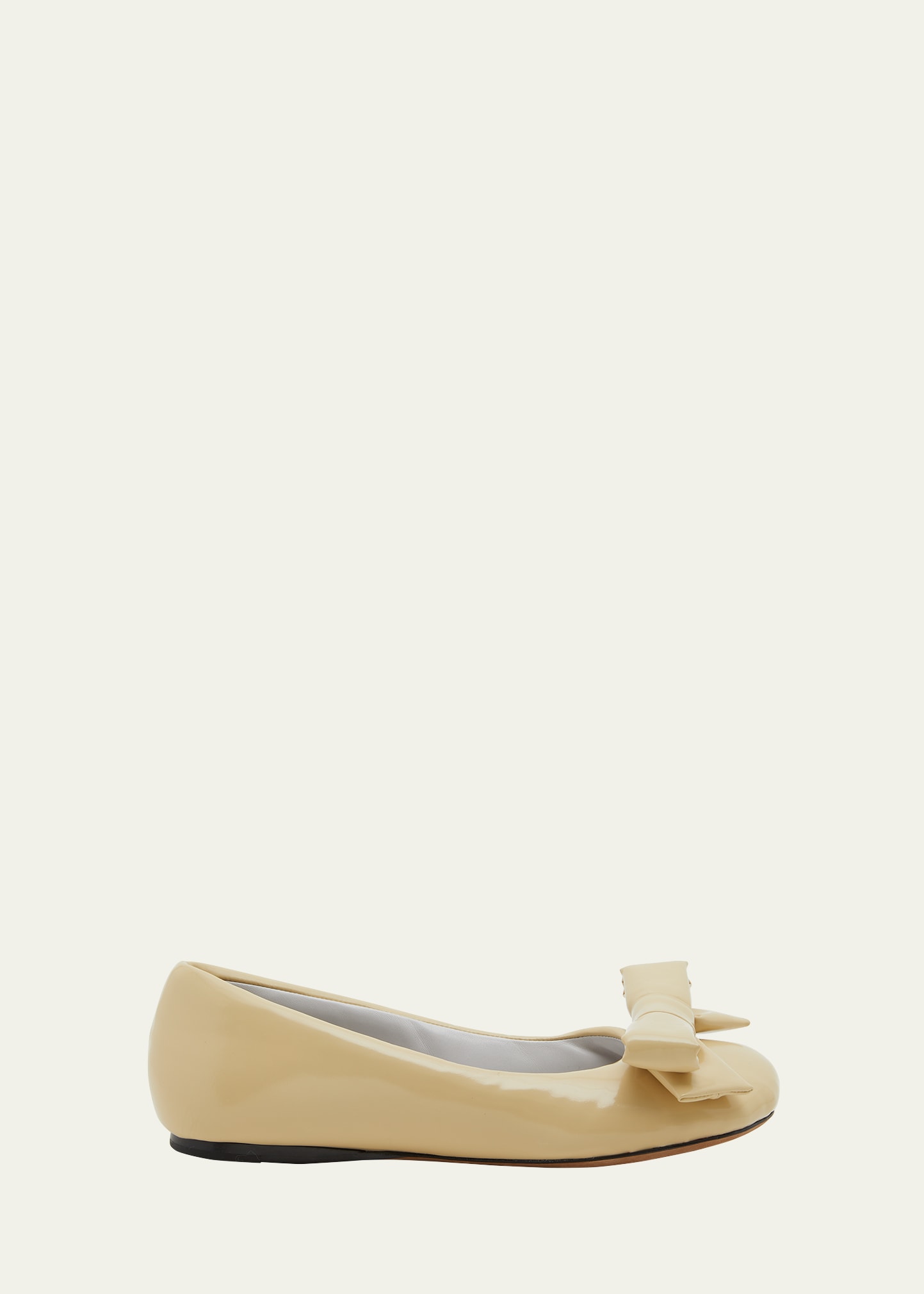 Loewe puffy ballerina flats with bow accent Flat heel Round toe Slip-on style Patent calf leather Made in Italy