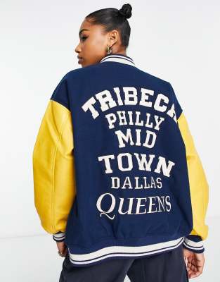 Coats & Jackets by Pull & Bear Jacket upgrade: check Baseball collar Snap placket Side pockets Text details to reverse Oversized fit
