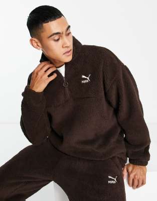 Puma Classics Cozy Club borg half zip sweatshirt in chocolate brown - Exclusive at ASOS