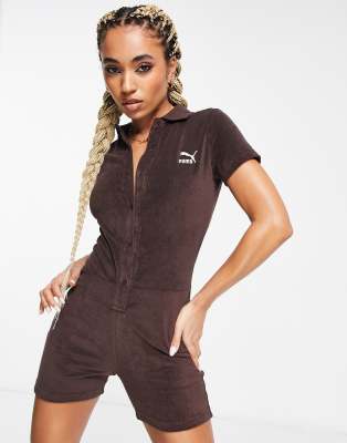 Puma Classics Cozy Club towelling romper in chocolate brown - Exclusive at ASOS
