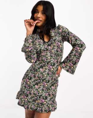 Dresses by QED London POV: you have plans High neck Tie-keyhole front Flared sleeves Slim fit