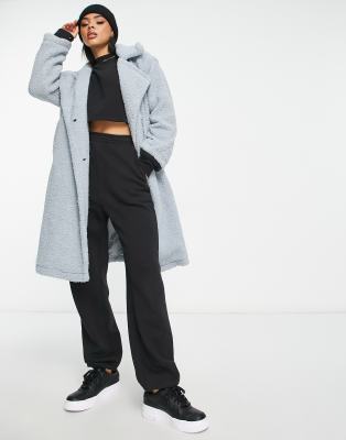 QED London oversized longline borg coat in blue