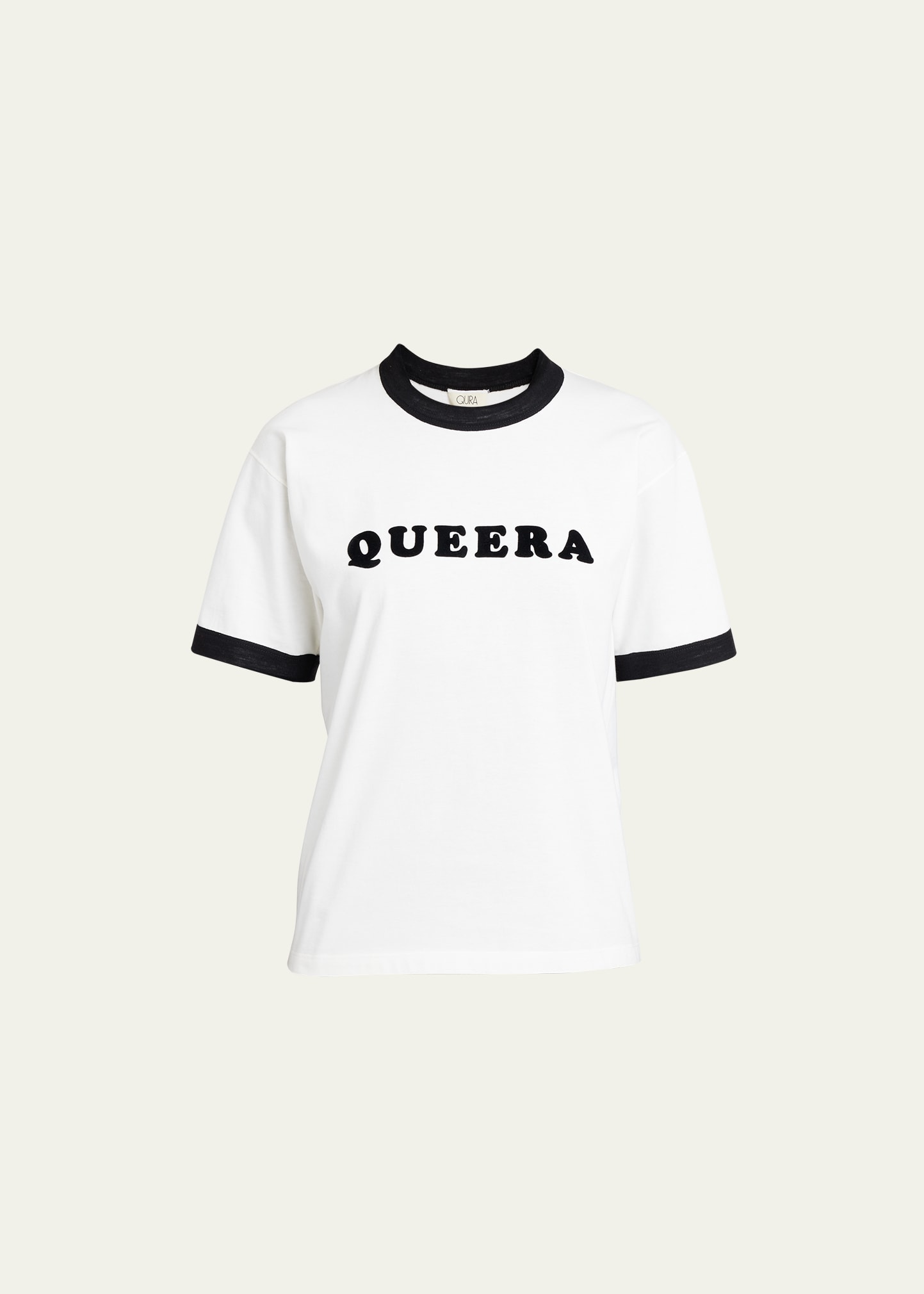 Quira shirt with contrast tipping and "Queera" front typography Crew neckline Short sleeves Relaxed fit Pullover style Cotton Made in Italy
