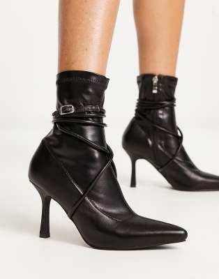 Shoes by Raid Level up Zip-side closure Wraparound, pin-buckle strap Pointed toe Mid point heel